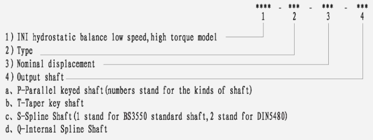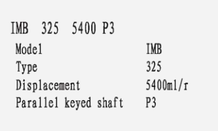 | TYPE | (ml/r) TEORISK FORSKJØVNING | (MPa) NOTERET TRYKK | (MPa) TOPPTRYKK | (N.m) RATBD MOMENT | (N.m/MPa) SPESIFIKKE MOMENT | (r/min) MAKS. HASTIGHET | (Kw) VURDERT PW | (kg) WIGHT |