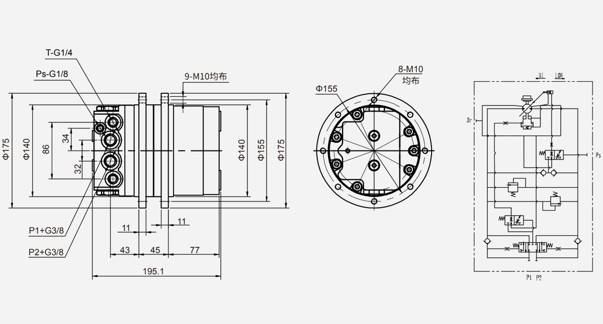| Modal | (L/min) | (ML/r) Motor | (Mpa) | (Mpa) | Girforhold | (N.m) | (r/min) | Rotasjon | (℃) olje | (mm2/s) |