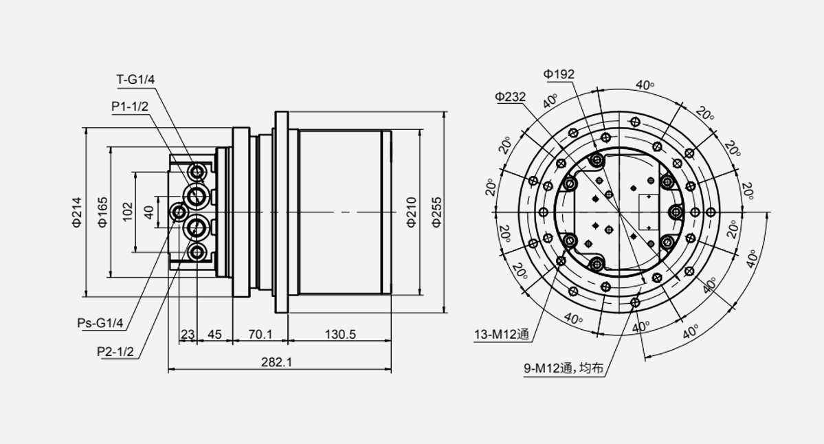 | Modal | (L/min) | (ML/r) | (Mpa) | (Mpa) | Girforhold | (N.m) | (r/min) | Rotasjon | (℃) | (mm2/s) | Anvendelig modeller |